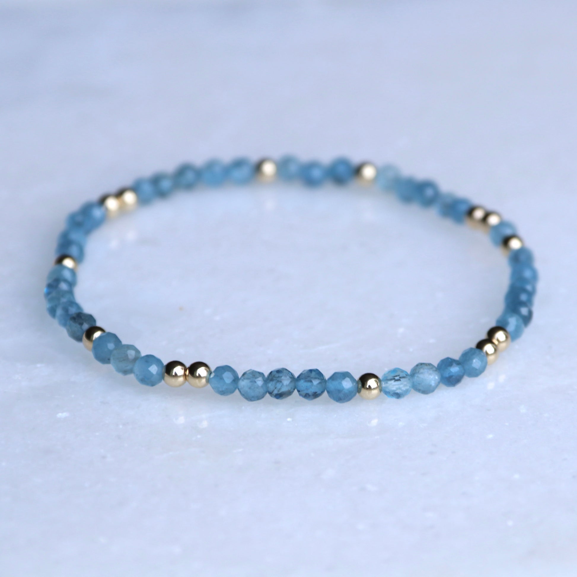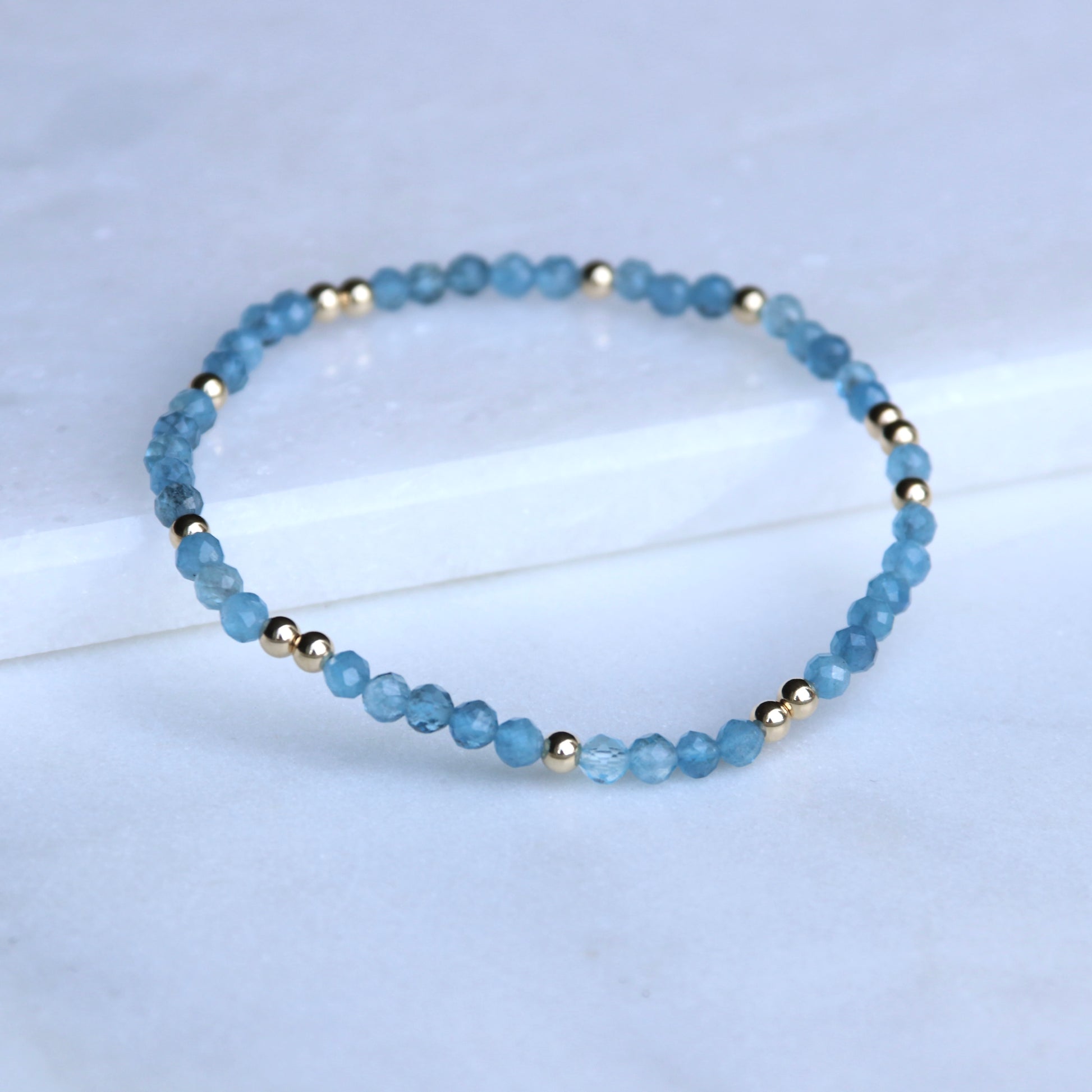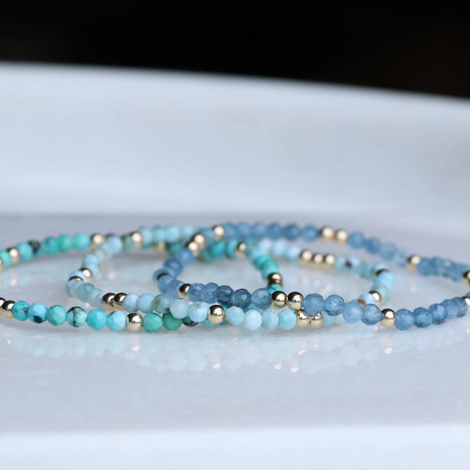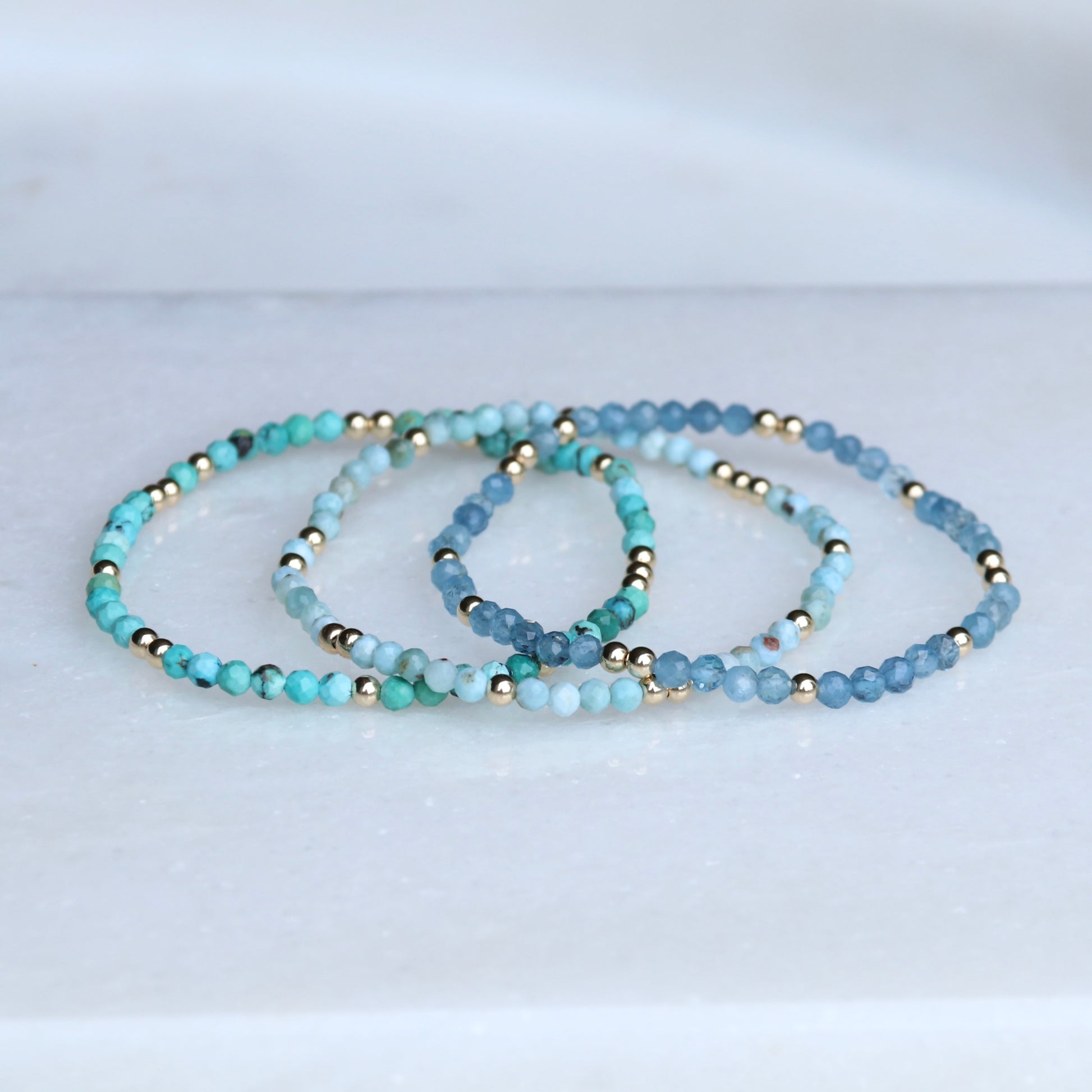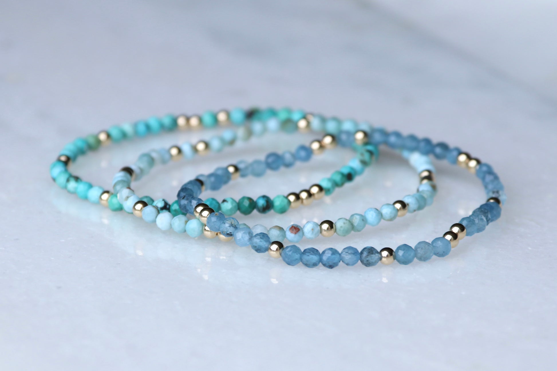 These bracelets are handmade using 3mm 14k Gold Filled beads and beautiful AAA Quality Faceted Aquamarine Gemstones.