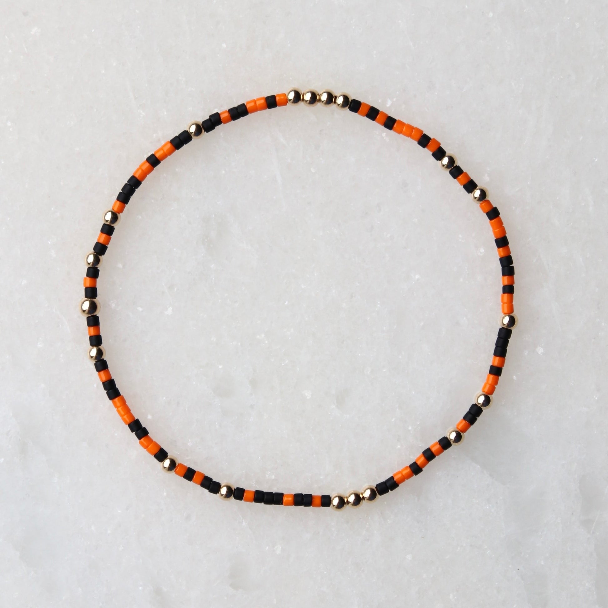 Bold, fierce, and full of energy.. this bracelet brings together black, orange, and gold for the ultimate GameDay look. Inspired by teams that wear these striking colors, it’s perfect for fans who want to show their pride with style. Think of the San Francisco Giants, Cincinnati Bengals, and college powerhouses like the Oregon State Beavers and Princeton Tigers, all known for their iconic black and orange traditions. The touch of gold adds a timeless edge, making this piece just as wearable beyond game day as it is in the stands.