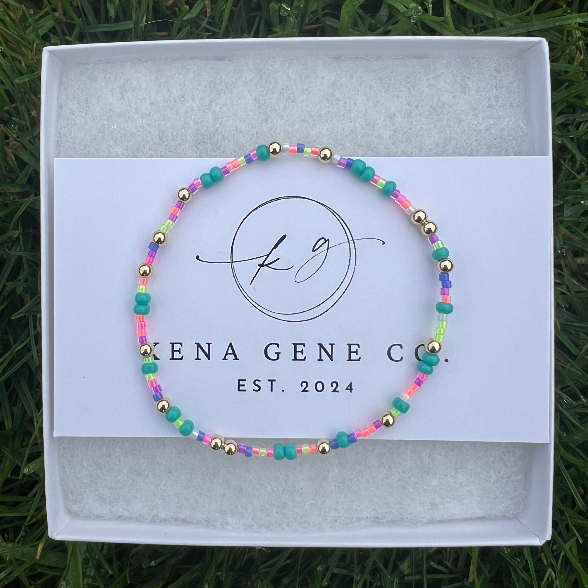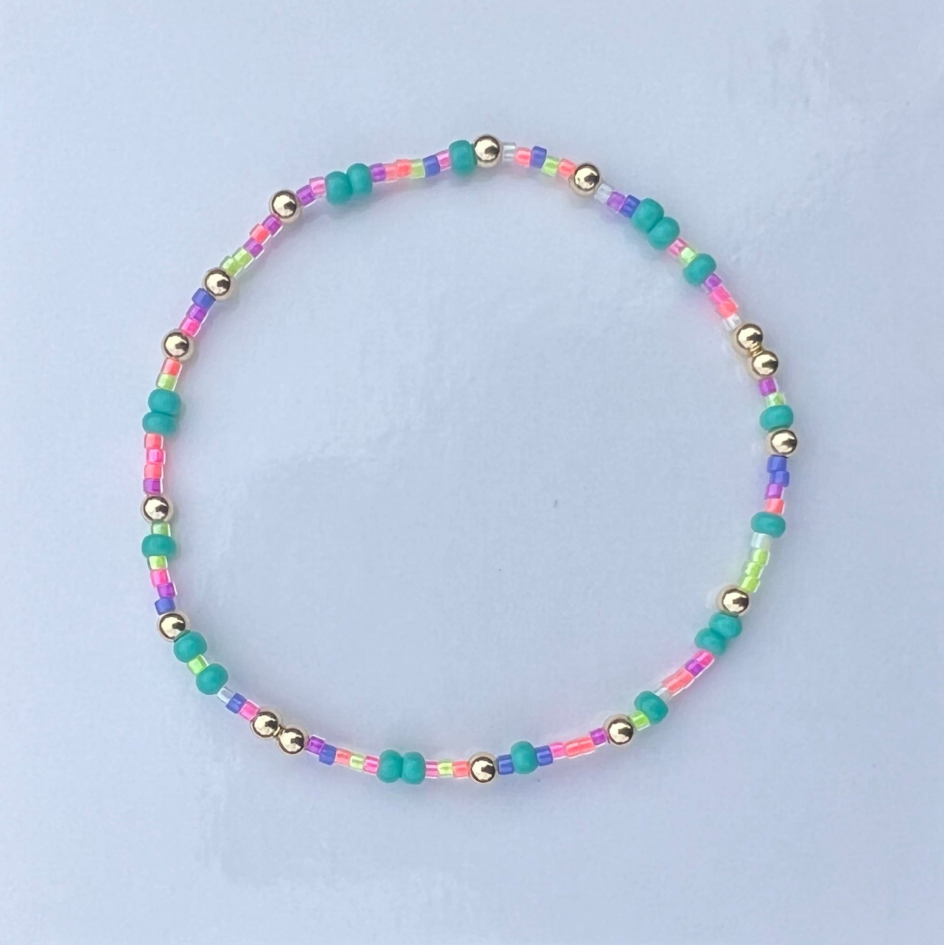 Each bracelet is meticulously beaded by hand using seed beads and 14k Gold Filled beads. Each bracelet is unique, please allow for slight variations.