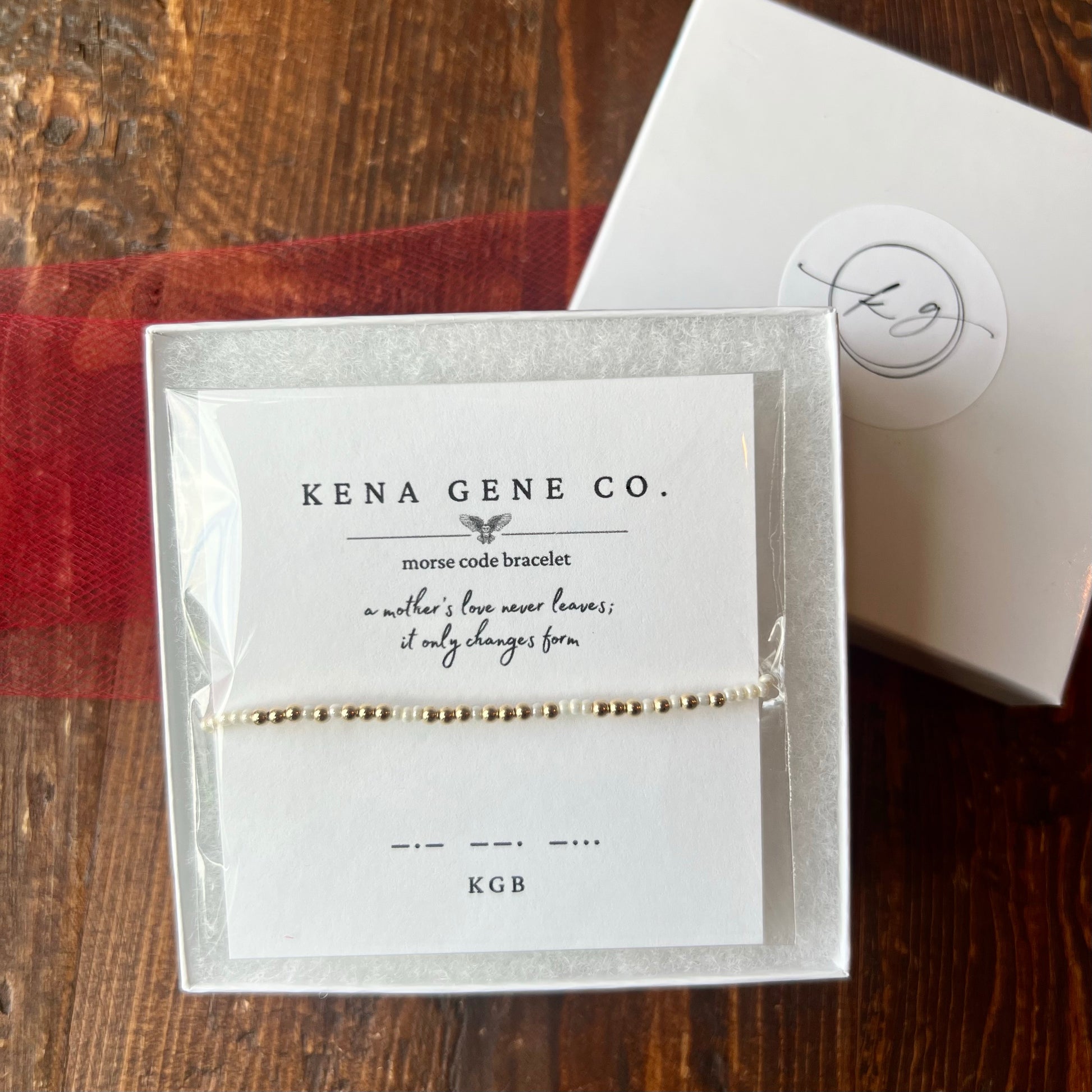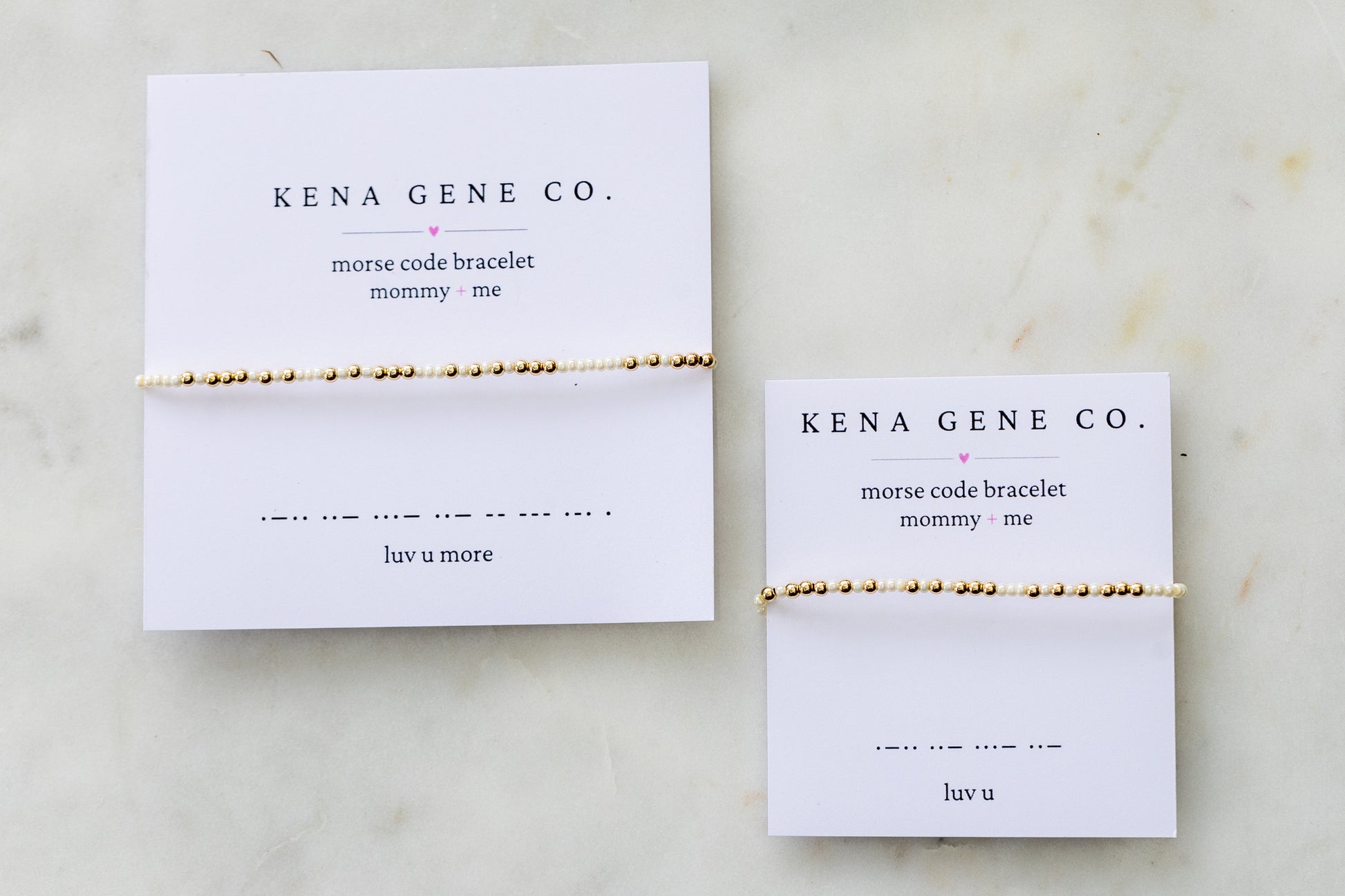 Each bracelet is handcrafted using 2.5mm 14k gold-filled beads to represent the Morse code lettering, set against one of our signature Nora bracelet base patterns or a solid color. Choose from soft hues like Ivory, bold tones like Matte Black, vibrant with our Nora Gene Neons or colorful with our Nora patterns like Sorbet or Wildflower.