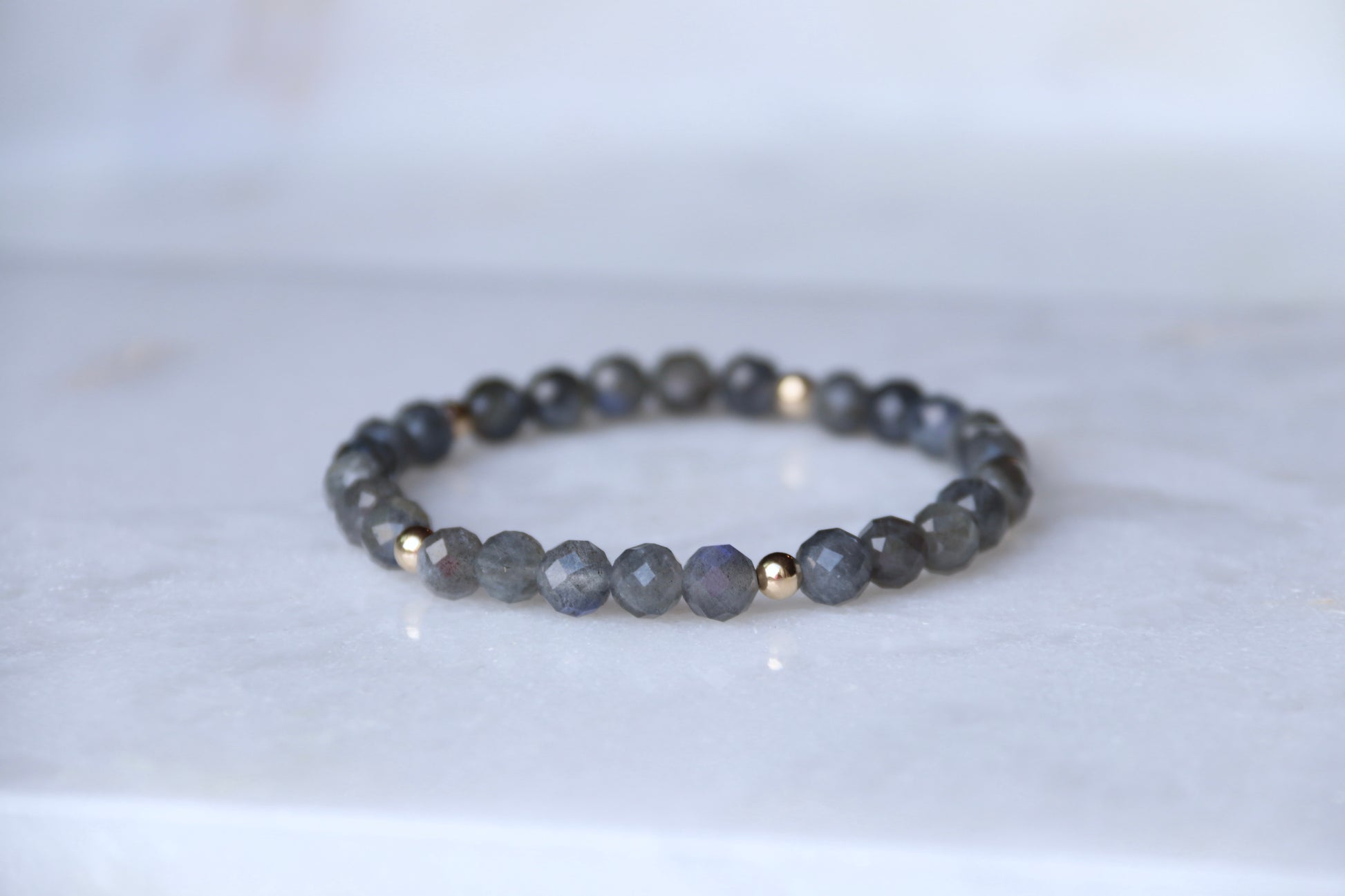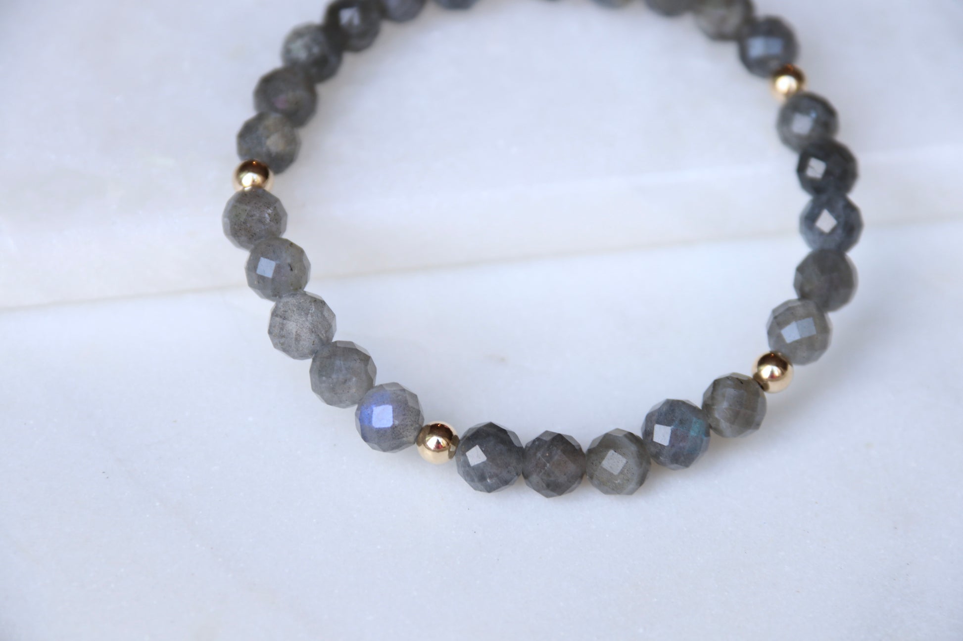 These bracelets are handmade using 4mm 14k Gold Filled beads and Labradorite Gemstone Beads.