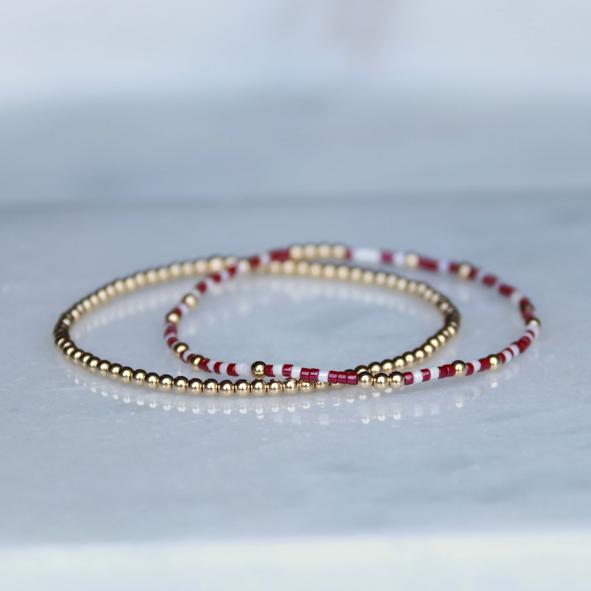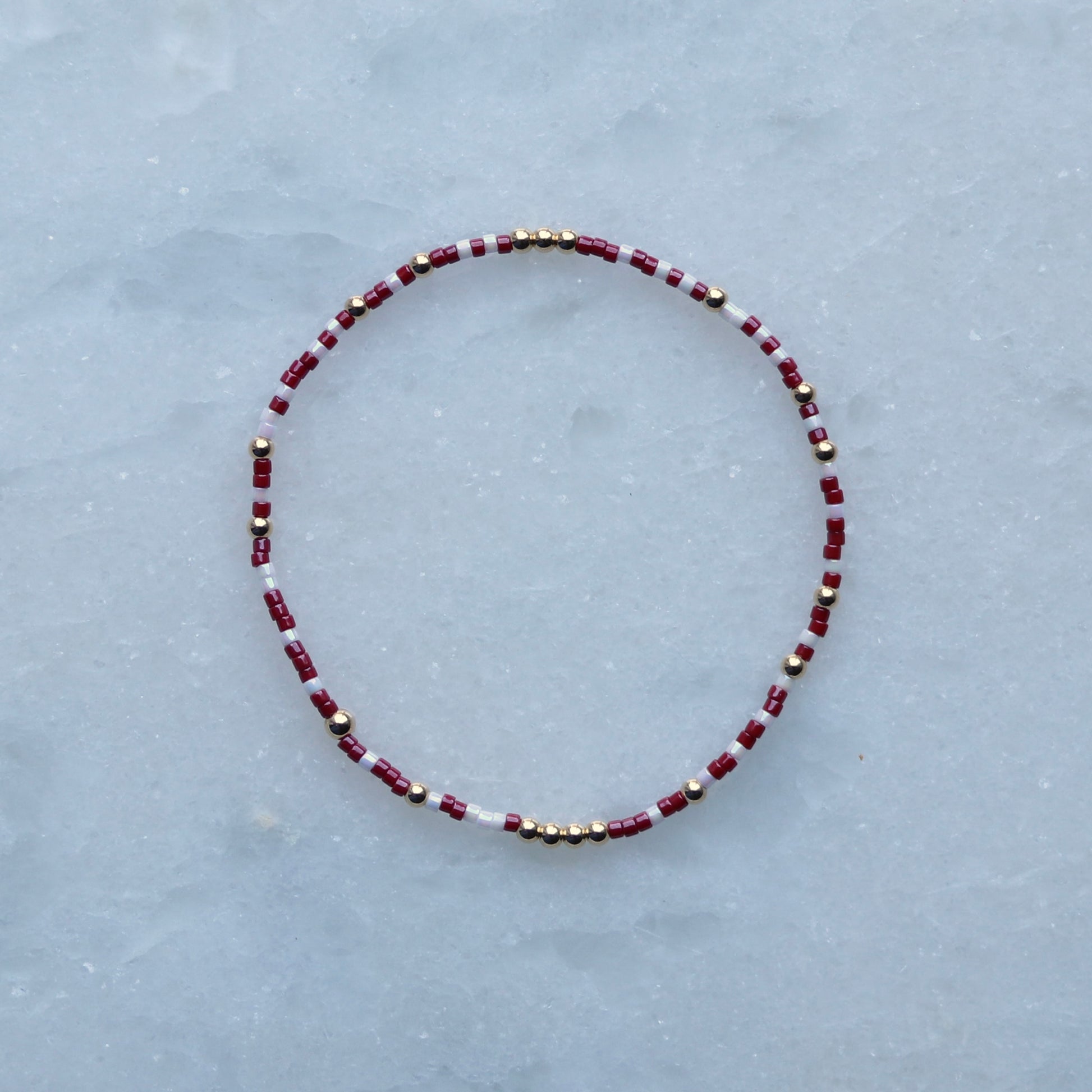Whether you’re cheering on game day, repping your alma mater, or just love the bold look of red and white, this bracelet is a classic way to show your pride.