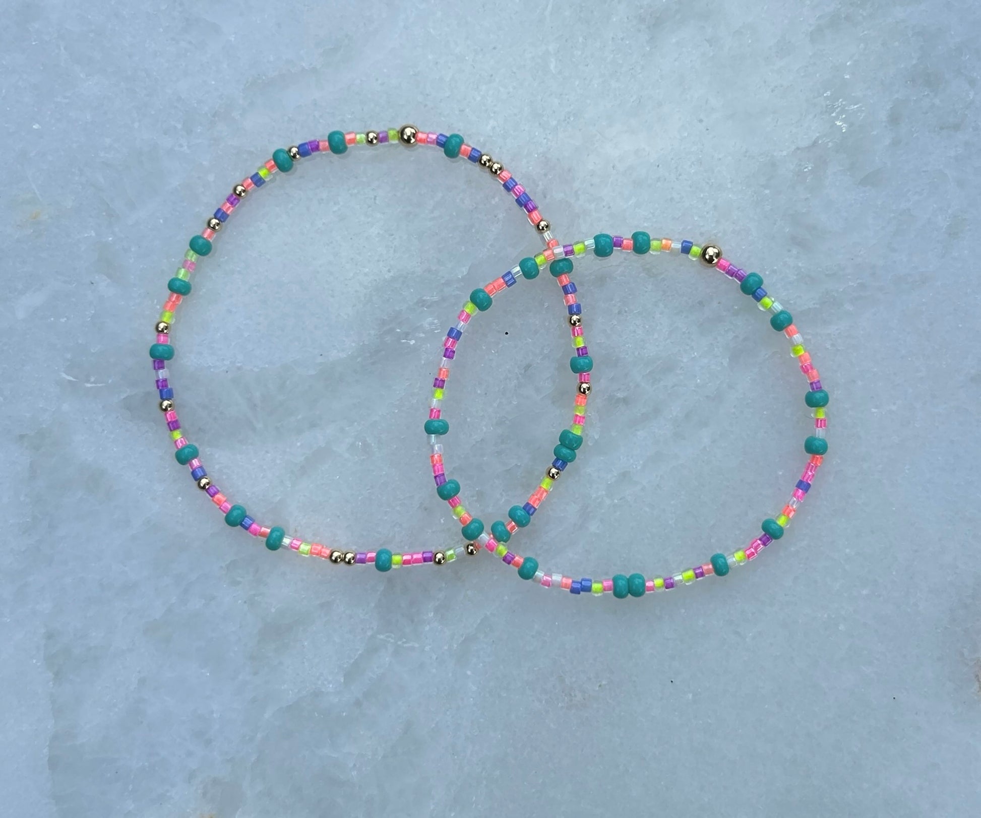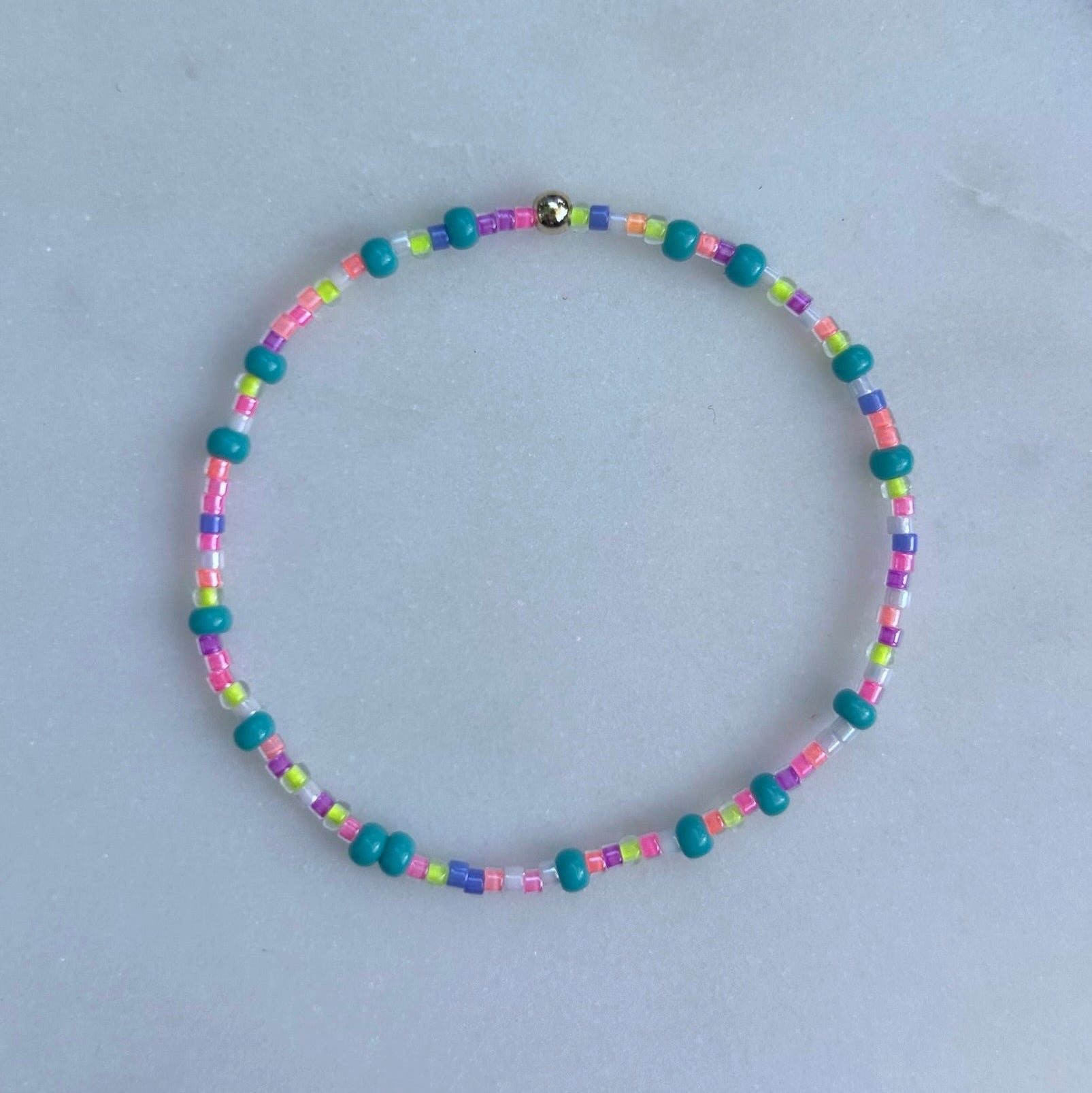 Each bracelet is meticulously beaded by hand using seed beads and 14k Gold Filled beads. Each bracelet is unique, please allow for slight variations.