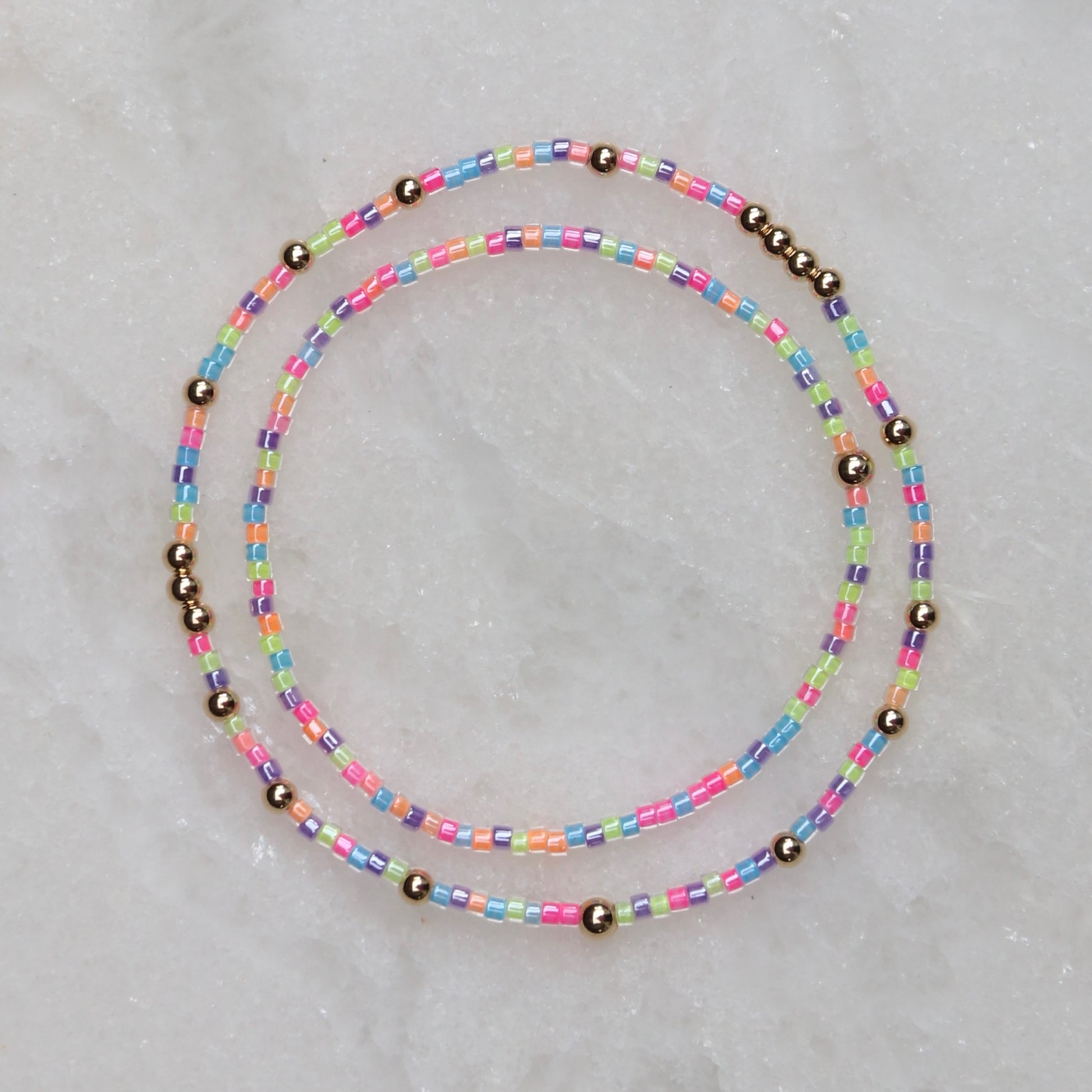 Each bracelet is meticulously beaded by hand using seed beads and 14k Gold Filled beads. Each bracelet is unique, please allow for slight variations.