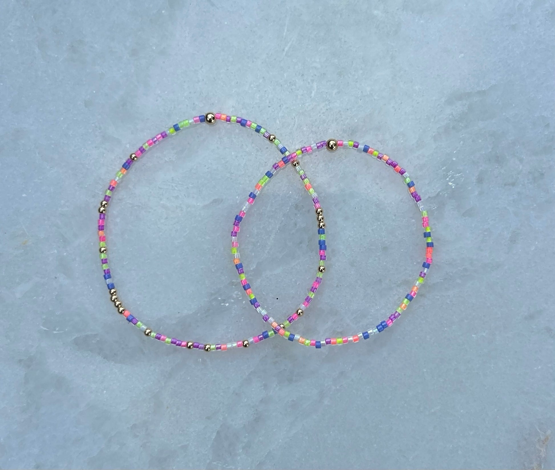 Each bracelet is meticulously beaded by hand using seed beads and 14k Gold Filled beads. Each bracelet is unique, please allow for slight variations.