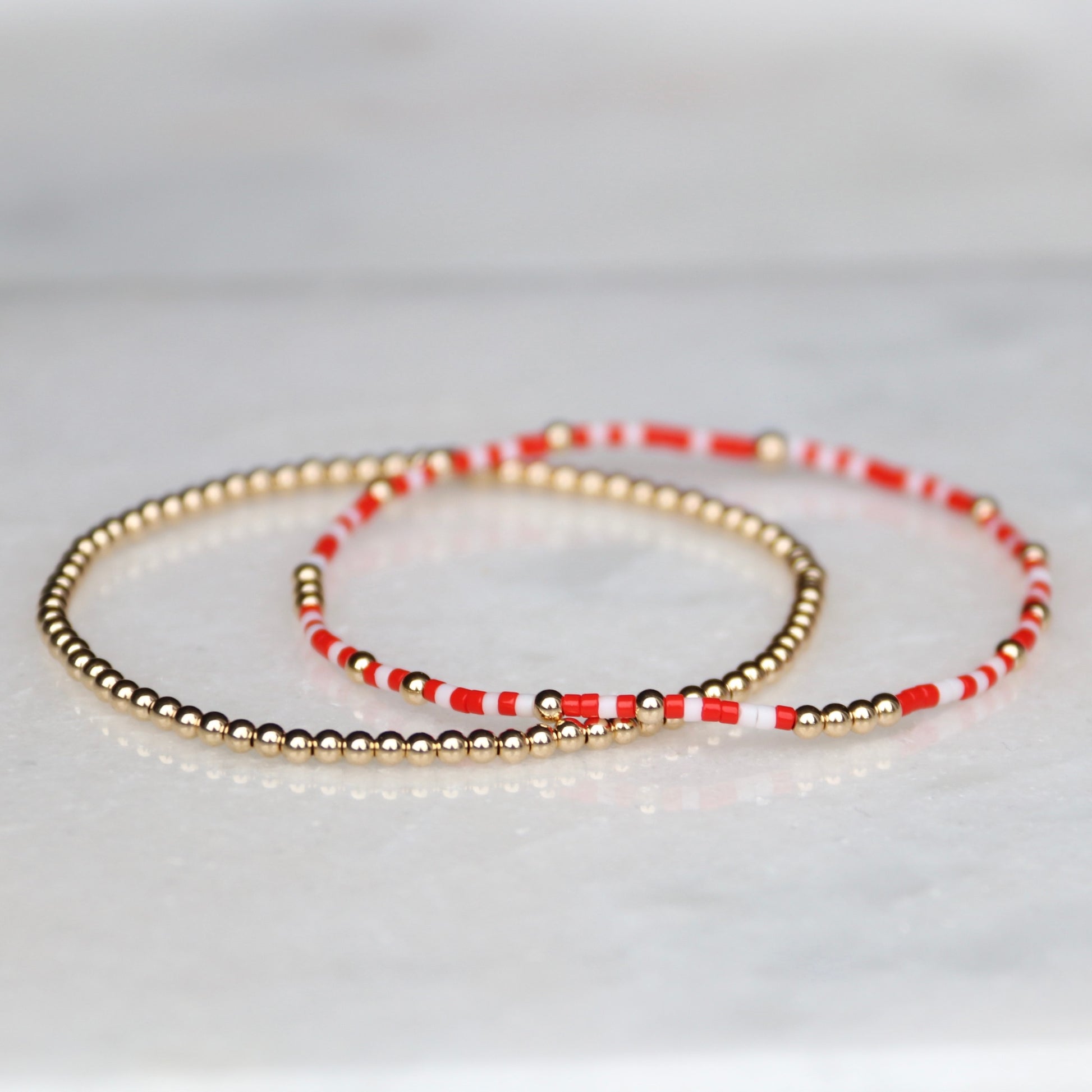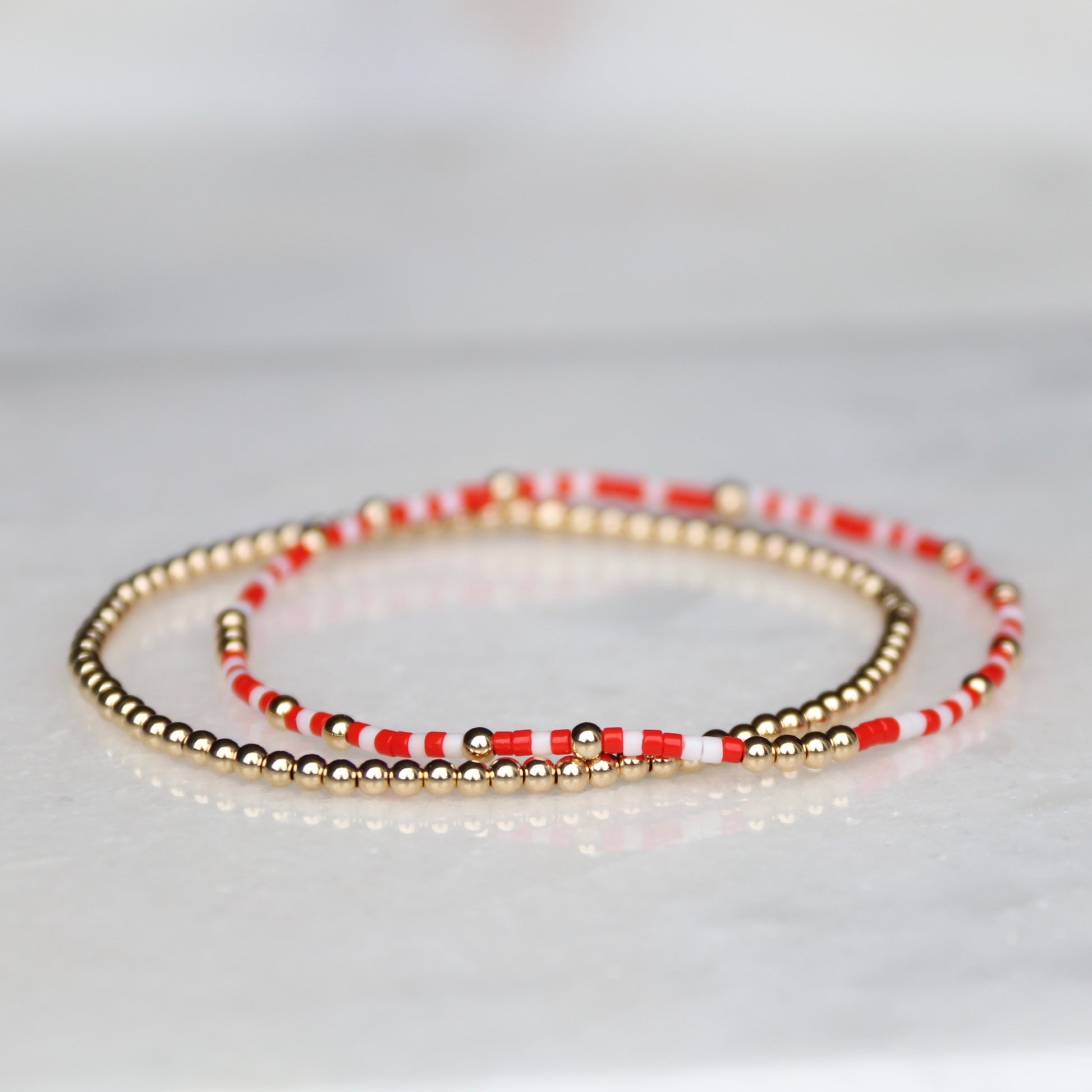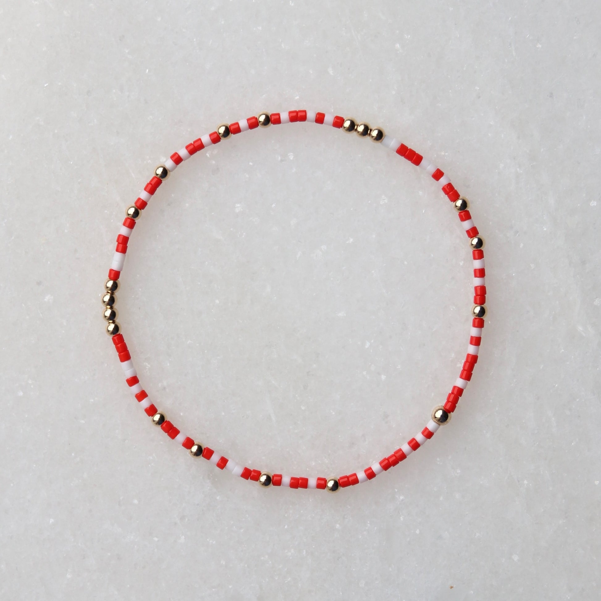 Whether you’re cheering on game day, repping your alma mater, or just love the bold look of red and white, this bracelet is a classic way to show your pride.