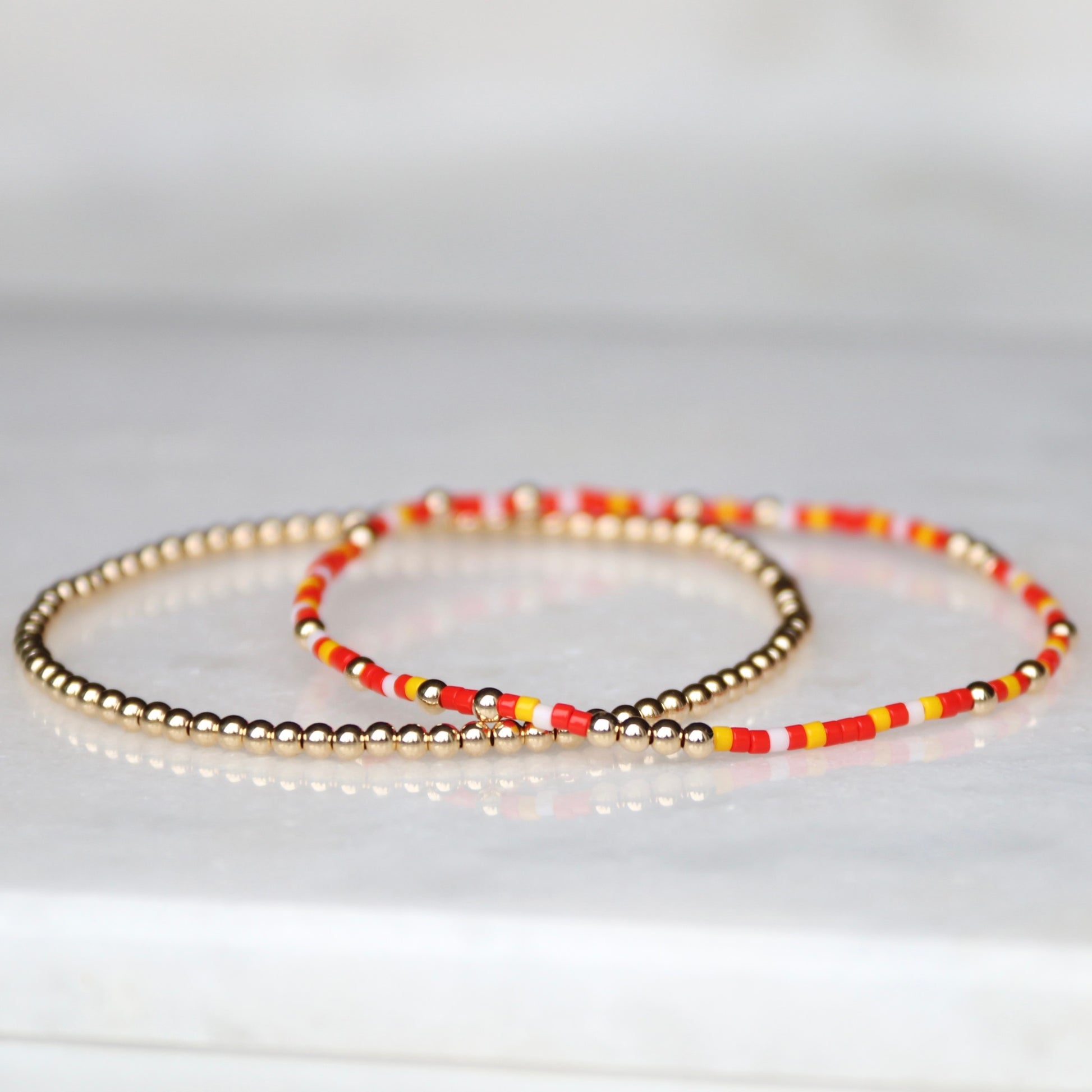 This bracelet was inspired by the bold colors of the Kansas City Chiefs. Handcrafted with red, white, and yellow beads accented by 14k gold-filled beads, it’s a perfect way to celebrate Chiefs pride. Whether you’re cheering at Arrowhead or showing your spirit every day, this piece brings a touch of GameDay energy and timeless style to your collection.
