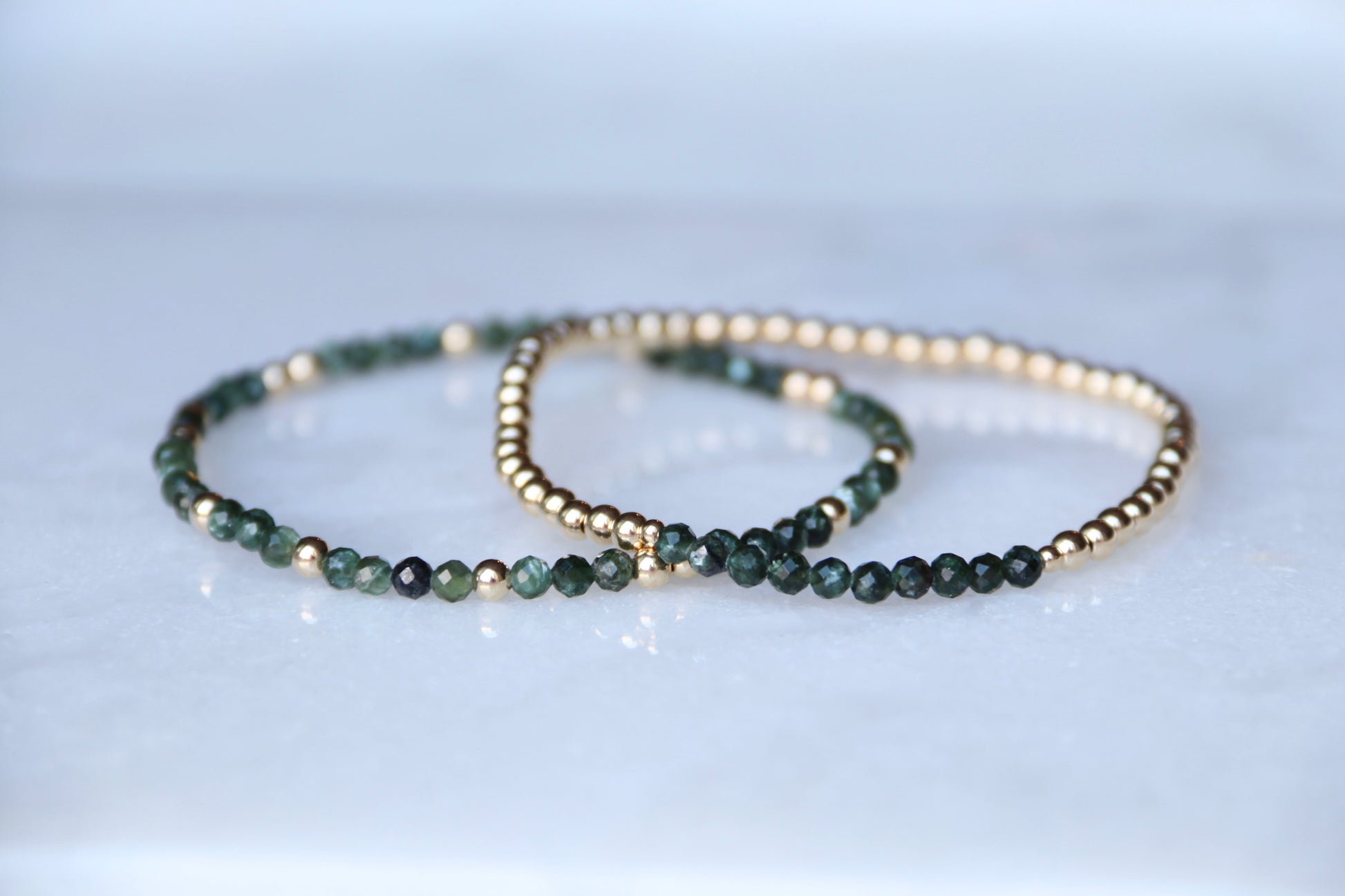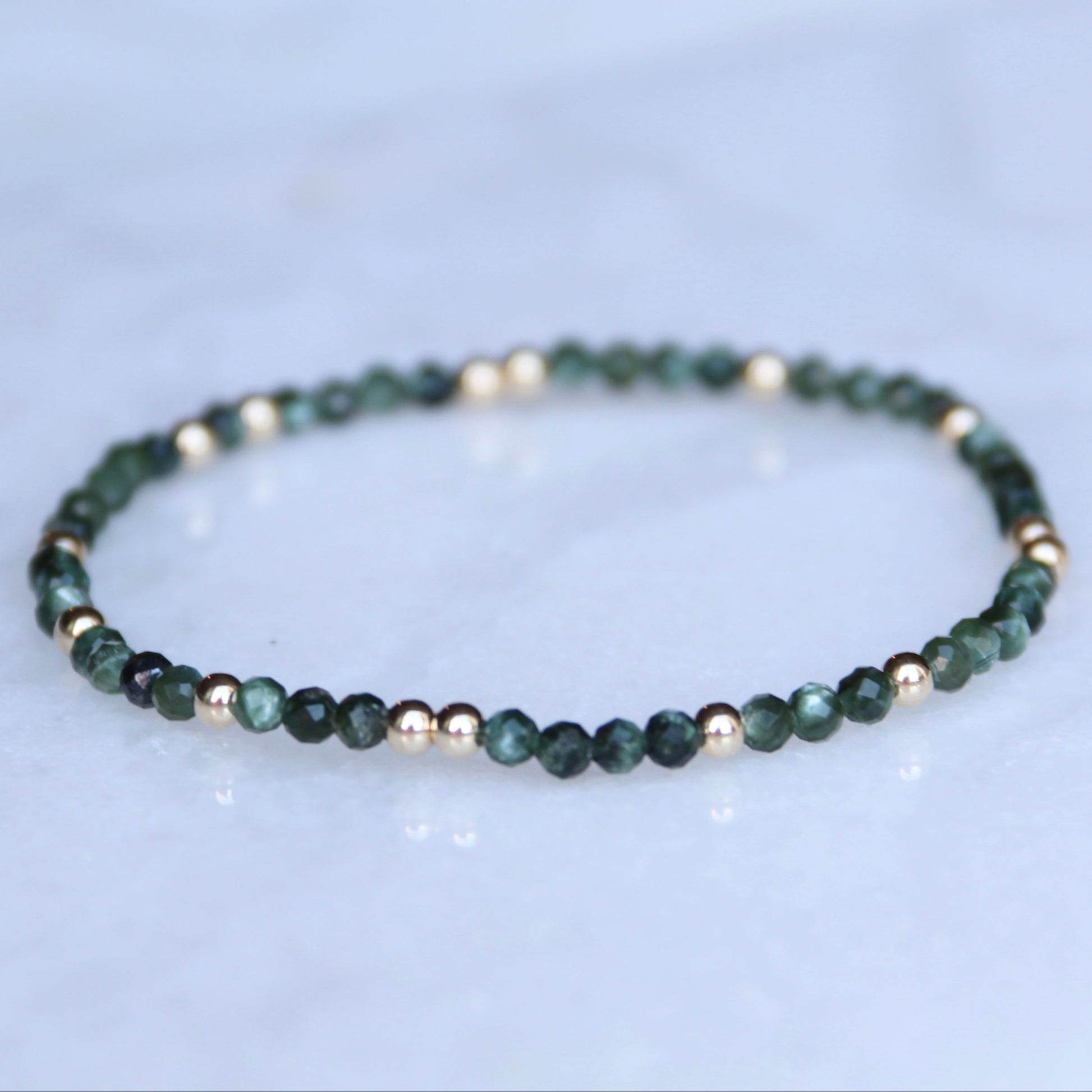 These bracelets are handmade using 14k Gold Filled beads and Natural Seraphinite Gemstones.