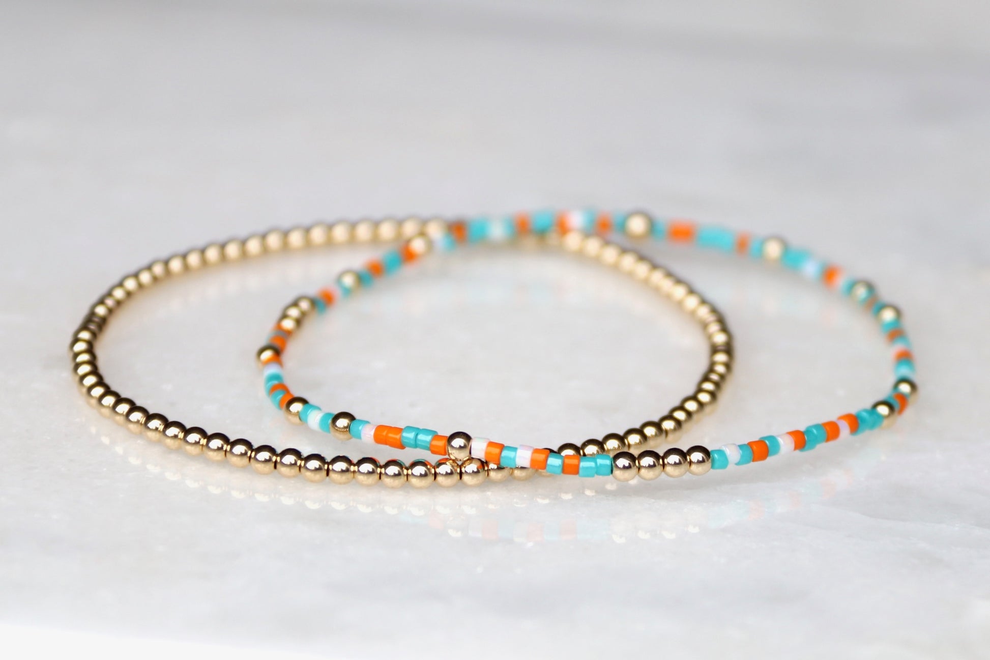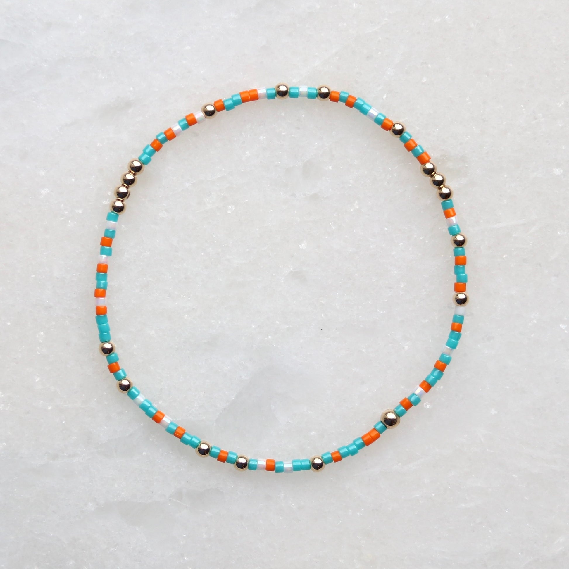 This bracelet is inspired by the vibrant colors of the Miami Dolphins. Handcrafted with beads in Teal, orange, and white, it captures the energy of South Florida and the team’s unmistakable look. Whether you’re cheering at Hard Rock Stadium or showing your Dolphins pride every day, this bracelet is the perfect way to rep your team with style.