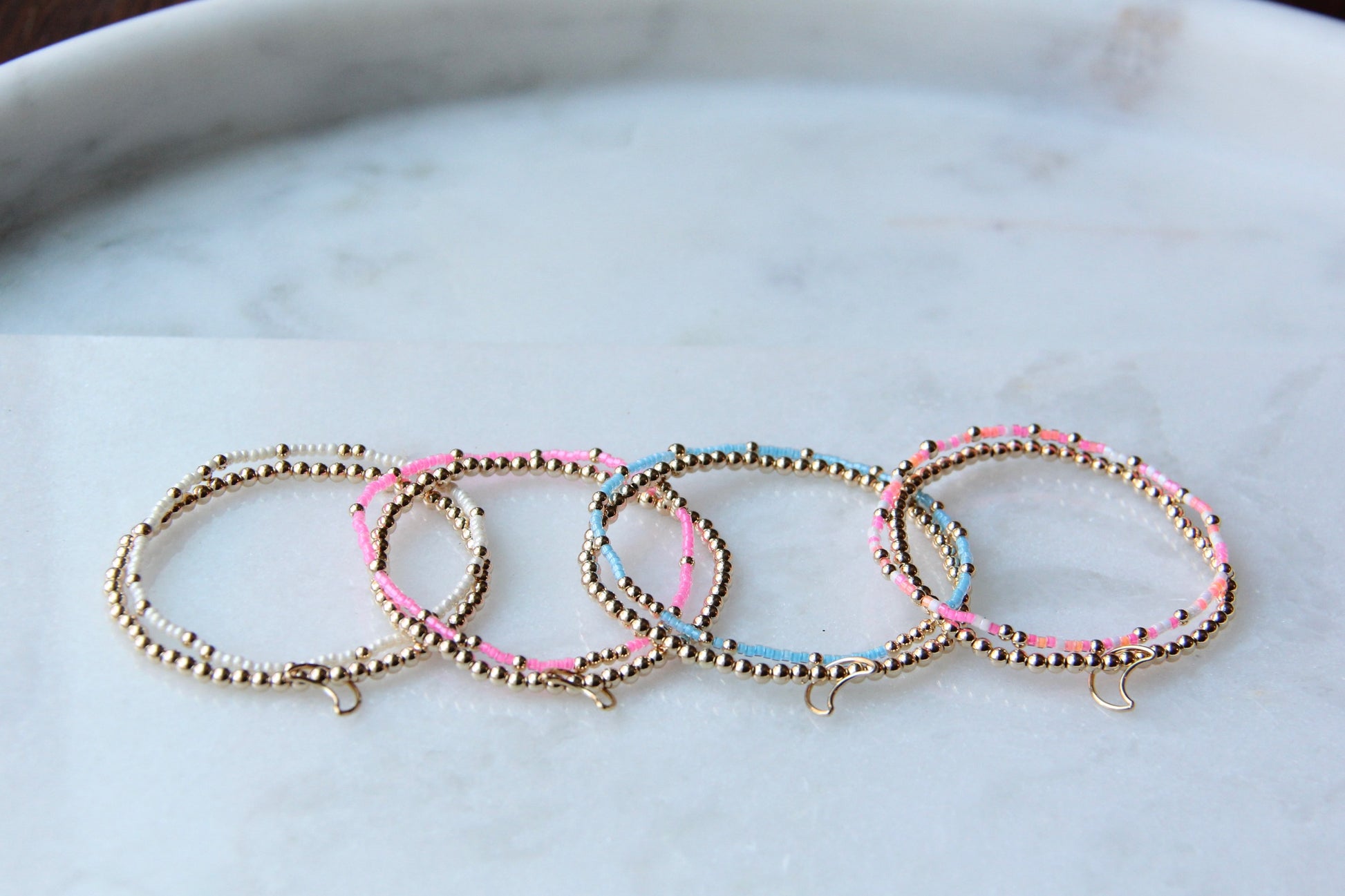 In the photos, she paired each bracelet with a different color Nora bracelet (sold separately).