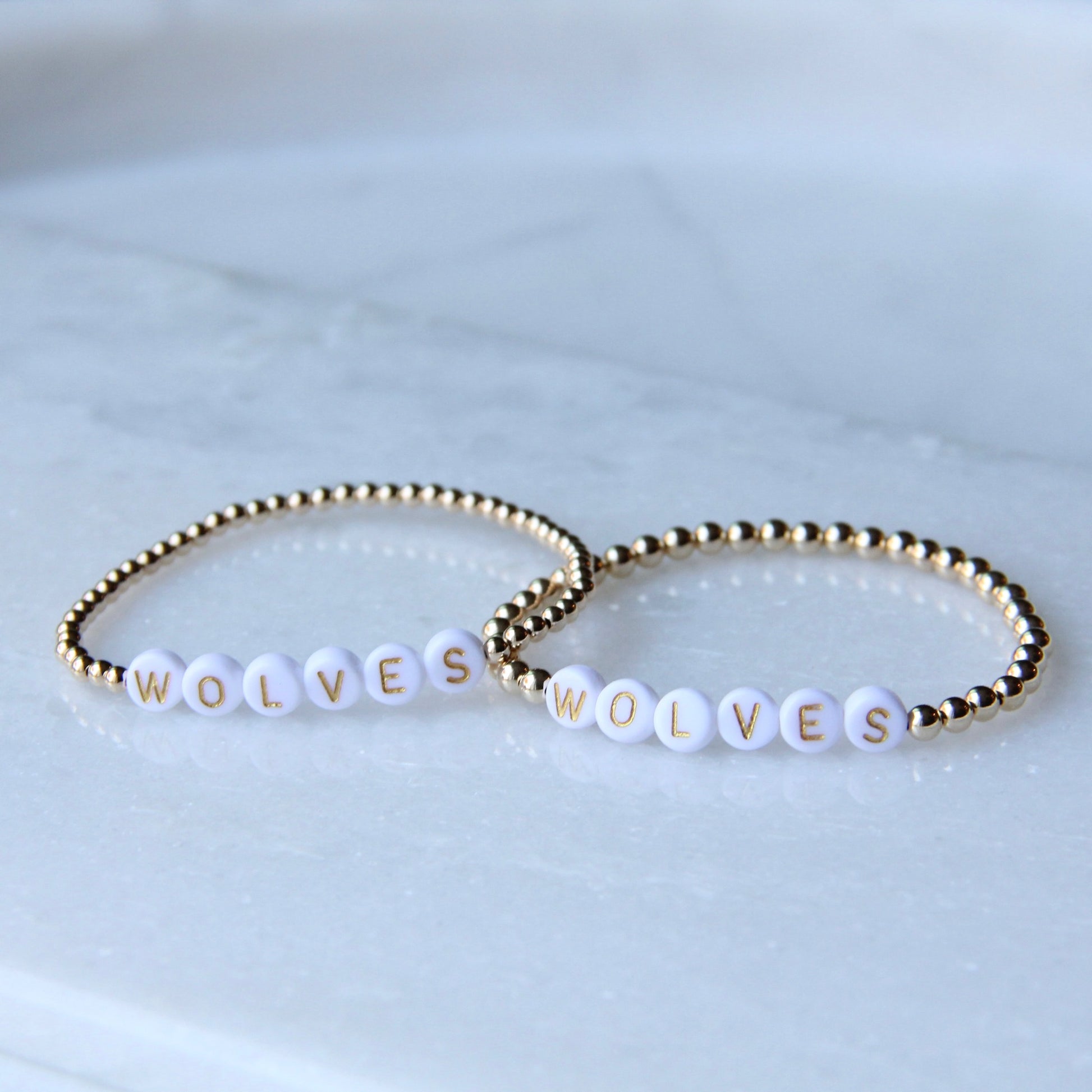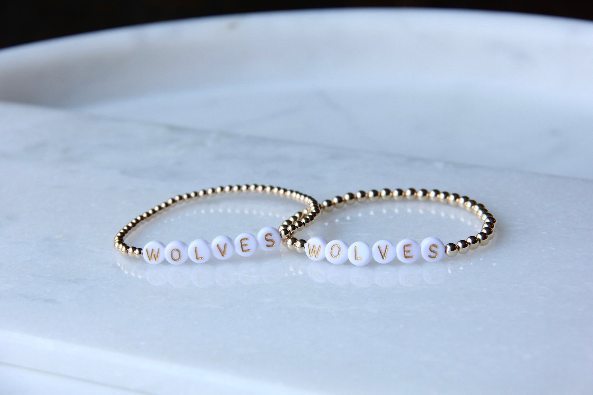 Show your SRVHS spirit with this WOLVES bracelet! The perfect stacking piece. Pair with our SRVHS Nora Gameday bracelet.